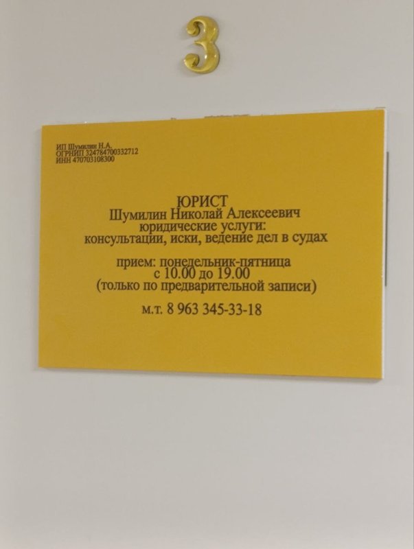 Никогда нельзя предугадать, когда вам может понадобиться юридическая помощь. Кабинет юриста Шумилина Н. А. предлагает успешное решение любых споров в досудебном и судебном порядке. Для вас работают адвокаты и юристы - специалисты с многолетним опытом работы - которые готовы ответить на ваши вопросы. Если вы проживаете в Выборгском районе, то смело начинайте звонить по указанным номерам. Для тех, кому нужна такая услуга, как юридическое обслуживание, двери здесь открыты всегда.